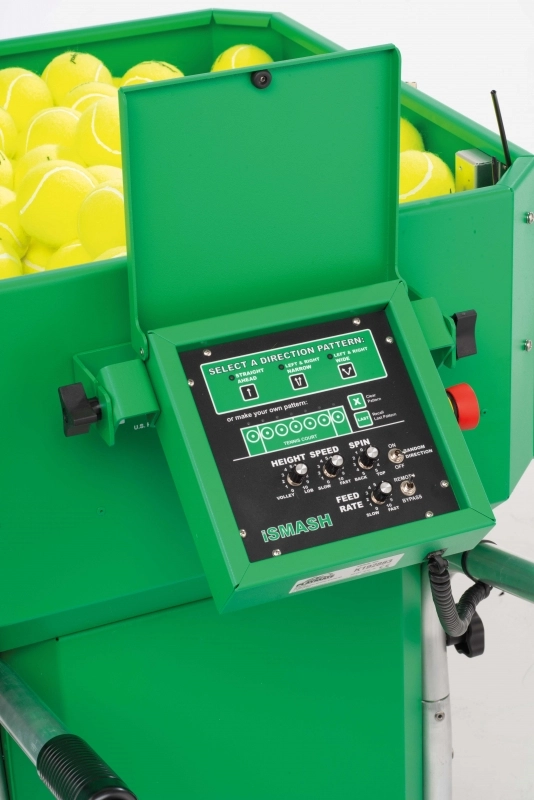 Le Playmate I-Smash Dream est le canon à balles le plus avancé d’Universal Sport. Il vous permettra de vous entraîner afin d’optimiser votre potentiel de réponse aux services de votre rival. Le canon à balles est utile aux débutants aussi bien qu’aux professionnels. Le canon de l’I-Smash Dream peut être réglé dans sept directions différentes et ainsi envoyer les balles de tennis à droite, au centre, à gauche, et dans quatre autres directions intermédiaires. Le canon à balles peut également simuler des coups de topspin et peut être réglé pour alterner entre l’envoi de balles courtes et de balles longues. La séquence des balles peut être ajustée en continu et entre 6 et 60 balles peuvent être envoyées par minute. L’appareil peut être utilisé aussi bien pour l’entraînement individuel que pour l’entraînement en groupe.Ce canon a une précision de lancer incroyable et est très silencieux d’utilisation. Vous pouvez utiliser l’application sur votre I-Phone ou I-Pad pour contrôler le canon à distance. Cette application vous permettra également d’enregistrer vos succès d’entraînement et les comparer à d’autres entraînements plus tard. Le Playmate I-Smash Dream répond aux exigences de sécurité les plus élevées et un capteur installé en son intérieur arrête le canon à balles dès que quelqu’un se trouve dans la ligne de mire. Le canon à balles fonctionne sur batterie avec une autonomie de 4 heures. De plus, l’appareil a une capacité de balles maximale de 240 balles (avec couvercle fermé) et la vitesse maximale d’envoi de balle est de 150 km / h.