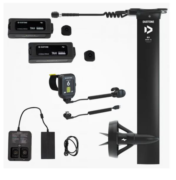 Ce set Duotone – E-Foil Cruise AL réunit l’ensemble des équipements nécessaires à la pratique du foil électrique pour les riders débutants à intermédiaires. Il offre une glisse stable, intuitive et progressive, portée par un mât aluminium rigide de 80 cm intégrant le moteur.