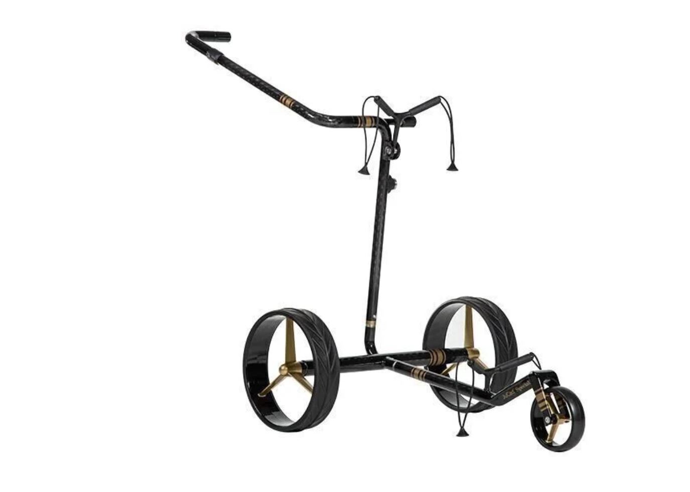 Ce chariot est le dernier modèle JuCad aux couleurs de course légendaires. Son design élégant est unique en son genre: la surface noire scintillante noble du chariot est raffinée avec des détails dorés. Mais le JuCad Carbon Travel Special 2.0 n’est pas seulement visuellement remarquable, avec seulement 5,8 kg / 12,8 lb de poids et deux moteurs puissants, le chariot promet une sensation pure de formule 1! Grâce à son cadre entièrement en carbone extrêmement robuste, qui a été spécialement conçu par nous pour les exigences particulières du terrain de golf, ce chariot offre une stabilité absolue malgré son faible poids de seulement 5,8 kg / 12,8 lb. et comprend des moteurs sans balais silencieux avec un frein de stationnement double face pour une adhérence sûre sur les terrains les plus escarpés et un affichage de l’état de charge intégré. Le chariot JuCad Carbon Travel Special 2.0 dispose d’une deuxième connexion à emboîtement pour obtenir une taille d’emballage mini pour les voyages. C’est un compagnon de voyage idéal en avion et peut être rangé dans le JuCad Travelcover avec votre sac de golf – vous ne voyagez qu’avec un seul bagage. Le contrôle de vitesse en continu, la fonction de préréglage automatique de la distance et la transmission intégrale silencieuse avec ses deux moteurs haute performance font de chaque partie de golf une expérience agréable. La télécommande JuCad est une option disponible et éviterait les distances de marche inutiles pour une partie de golf encore plus agréable. Cette édition spéciale est limitée dans le monde entier et peut être fournie avec le numéro de cadre souhaité.