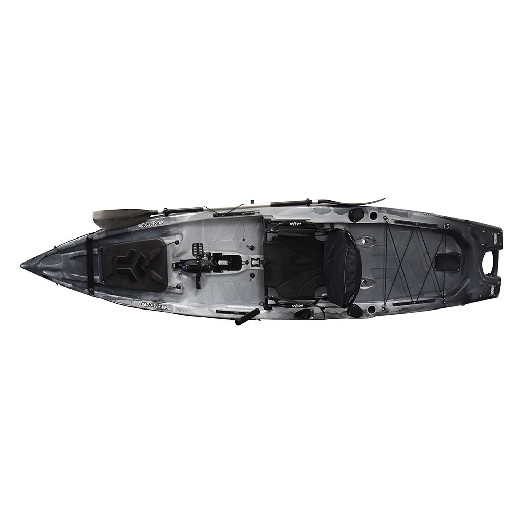 Le kayak de pêche est propulsé par l’Impulsive Drive, ce système éprouvé est léger. Il évolue en marche avant et arrière. La direction est assurée par un large safran en métal (position réglable) commandé par une manette à bâbord du kayakiste.