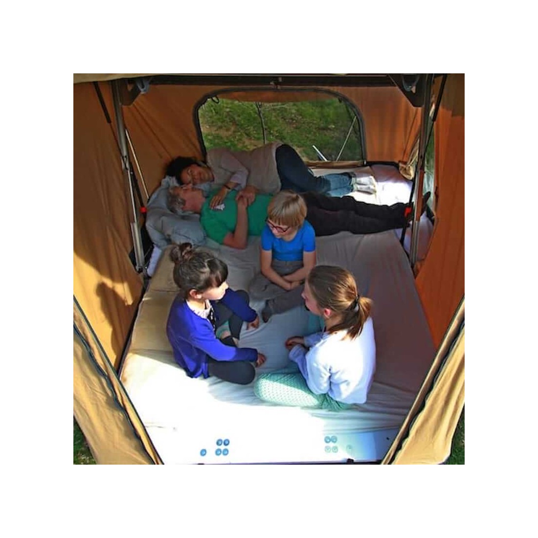 La tente de toit Family de NaïtUp est adaptée pour 5 personnes (2 adultes et 3 enfants).