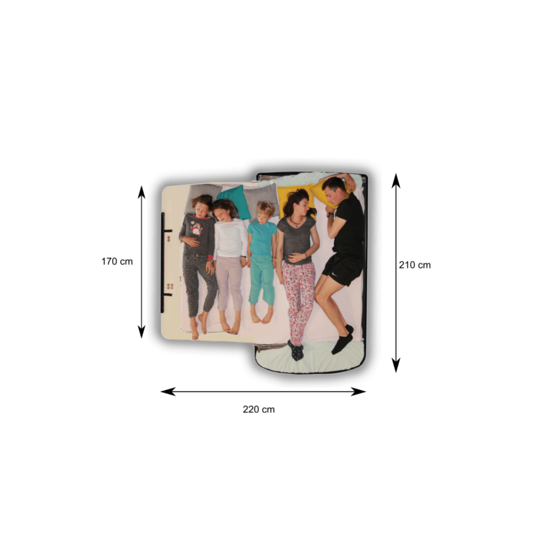 – Empreinte de couchage : 210 sur 40% de la surface et 170 sur 60% x 220 cm