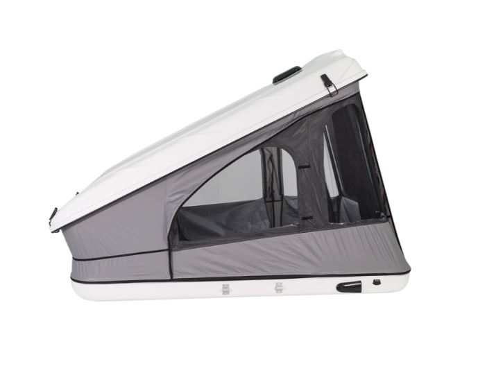 Un élastique intégré autour de la toile assure le retrait de celle-ci dans sa coque pendant la fermeture.La tente de toit Space XL Evo offre des grandes fenêtres en toile avec moustiquaires et une vue panoramique à 180°.
