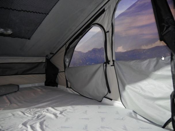 Toutes les tentes de toit rigides James Baroud sont équipées d’un filet de rangement au dessus de la coque, permettant une fois fermée de ranger 2 sacs de couchage,2 oreillers etc.